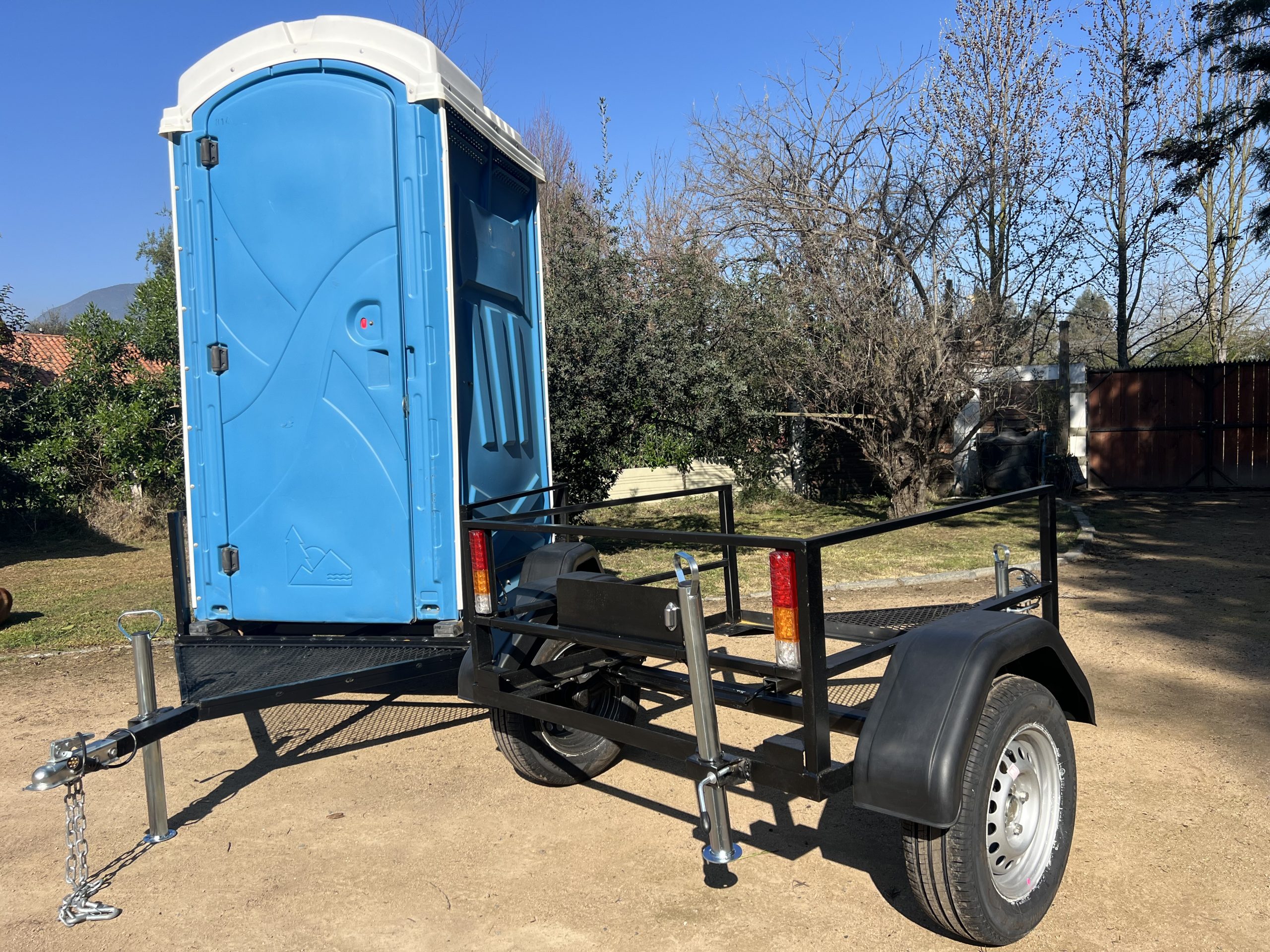 Carro de arrastre especialmente diseñado para el transporte y uso en terreno de un baño o ducha portátil. Fabricación de una sola pieza, está hecho para uso en carretera, faenas mineras, faenas agrícolas. Estos carros están regulados y en norma para cumplir con todos los requerimientos.